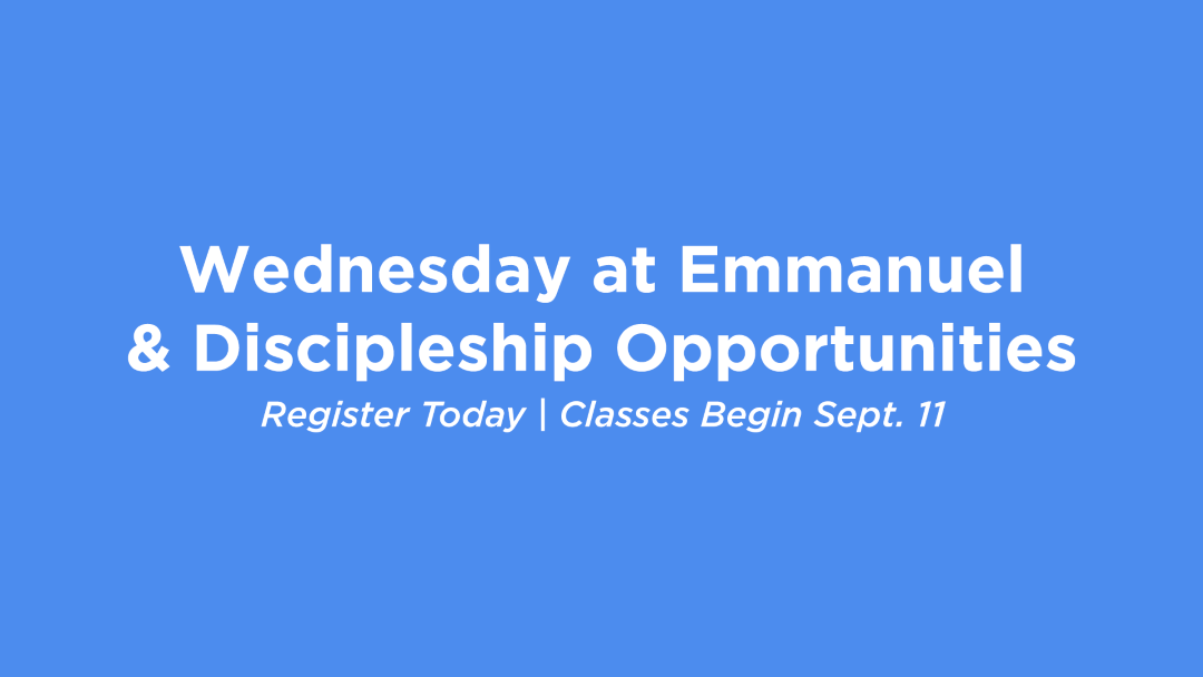You are invited to grow with us here at Emmanuel through our biblically based classes held on Wednesday evenings at 6:30PM & Sunday Morning at 9am. There is a class for everyone!